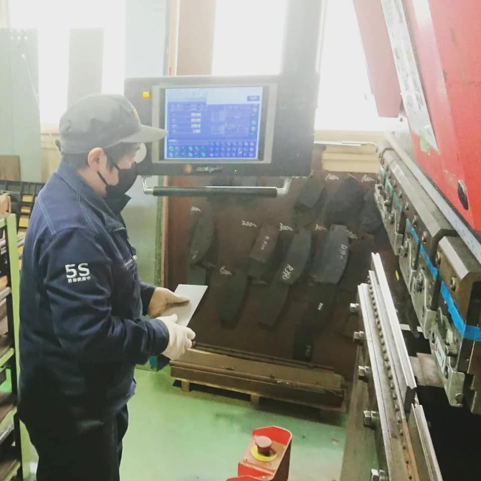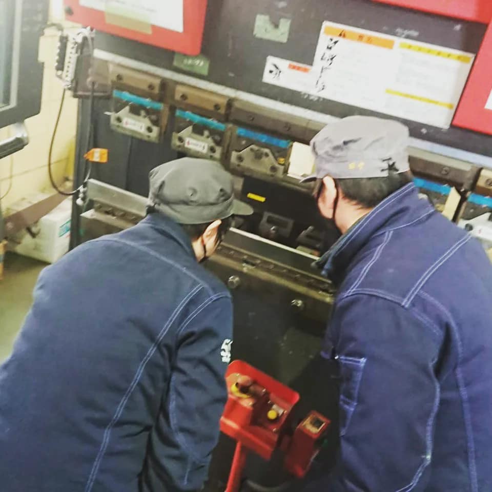曲げ機械の使い方の説明を受ける