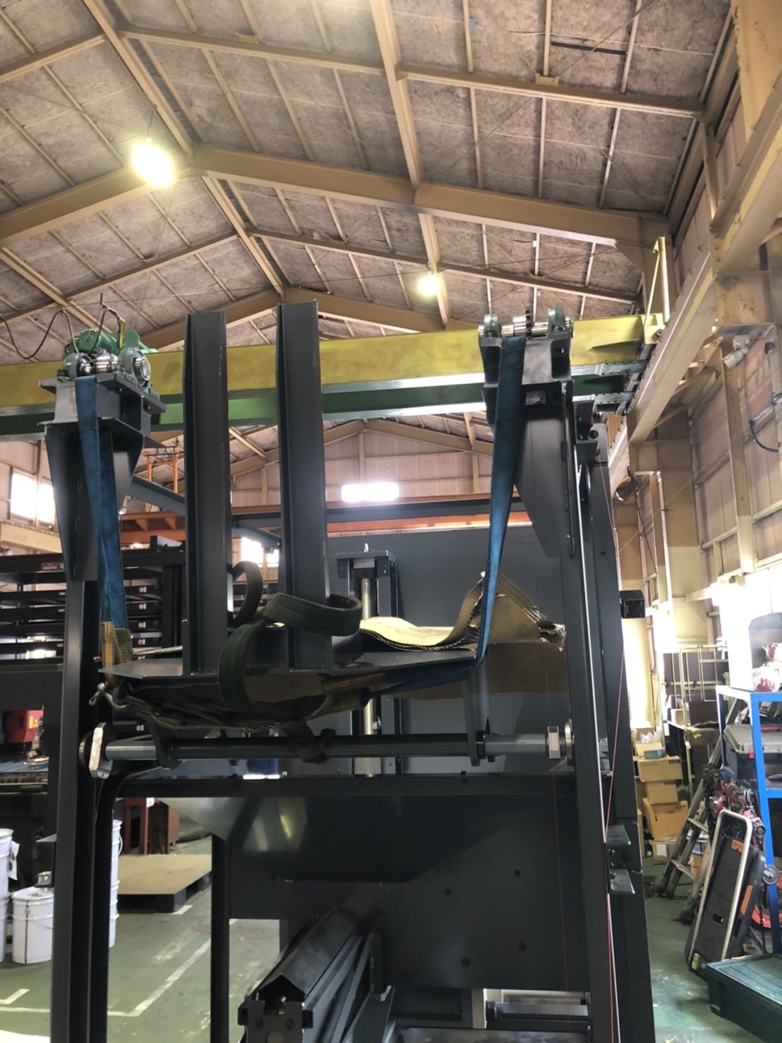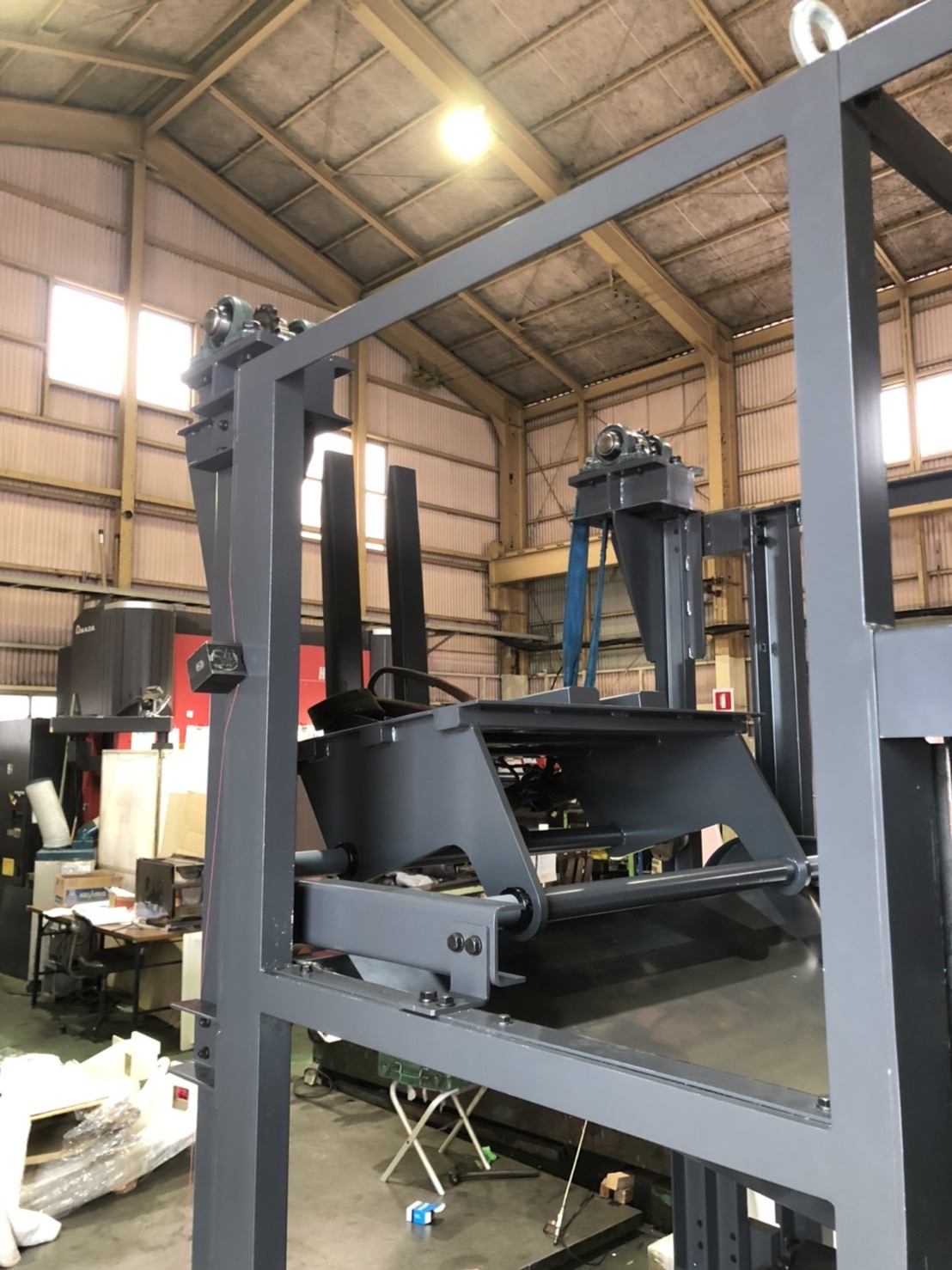 この写真は、投入機の台車を持ち上げるリフトです。