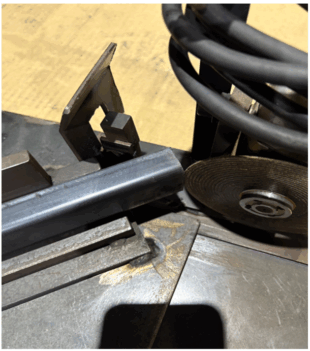 この治具は、フラットバーやチャンネル曲げを45°にカットするためのものです。