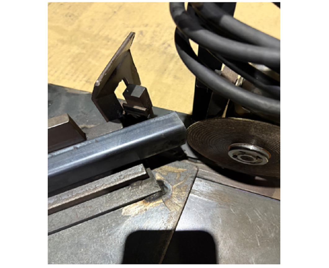 この治具は、フラットバーやチャンネル曲げを45°にカットするためのものです。